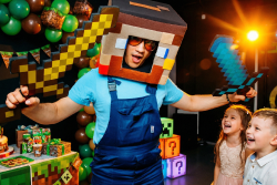 — Тематический реквизит: кубы-пиксели, майнкрафт-головы, динамиты, баннеры, луки и стрелы, деревянные кони