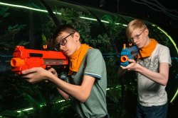 — Тематический реквизит: ультрафиолетовые фонари, фотоработы, пистолеты и мишени, баннеры, игры на память и концентрацию