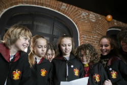 — Тематический реквизит: метлы, снитчи, мандрагоры, большие кубы с буквами, шляпа-распределитель, мемори