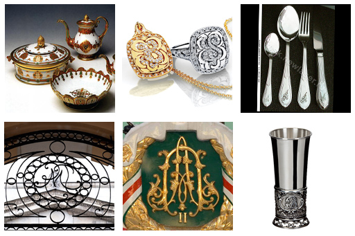 - Ювелирные украшения (серьги, кольца, подвески или звенья браслета могут быть выполнены в виде вензеля)